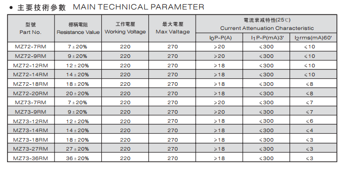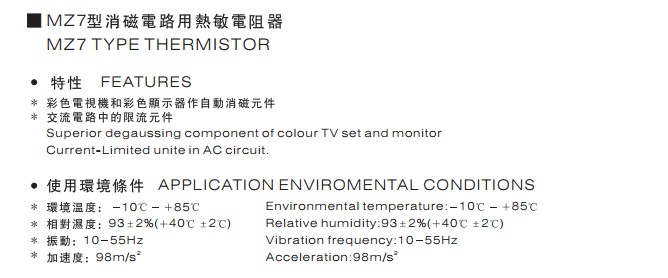 PTC熱敏電阻器:是一種以鈦酸鋇為主要成分的半導(dǎo)體陶瓷元件,當(dāng)溫度增加到居里溫度以上時(shí),其電阻值呈階躍式增加,可達(dá)到4~10個(gè)數(shù)量級(jí)。它具有電阻值隨溫度的增加而增加的特性。其中MZ2型熱敏電阻器由于過(guò)流保護(hù)作用而用于通訊及交流電路中。MZ3型熱敏電阻器具有延長(zhǎng)燈絲壽命及節(jié)約能源而用于電子節(jié)能燈及電子鎮(zhèn)流器,用于數(shù)字式萬(wàn)用表中作過(guò)流保護(hù)元件、交流電路中過(guò)熱保護(hù)。MZ9型馬達(dá)啟動(dòng)熱敏電阻器可作為無(wú)觸點(diǎn)開(kāi)關(guān)用于制冷設(shè)備的壓縮機(jī)及大功率馬達(dá)中。MZ7型消磁電路用熱敏電阻器,在彩色電視機(jī)和彩色顯示器作自動(dòng)消磁元件,