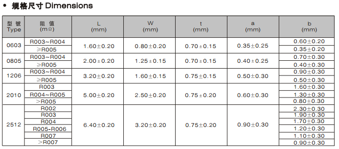 合金超低阻值片式固定電阻器,●最高功率可達(dá)2W ●最低TCR為±50 ppm/℃ ●適于作電流探測(cè)用電阻器如電源電路、發(fā)動(dòng)機(jī)用電路等 ●機(jī)械強(qiáng)度高、高頻特性優(yōu)越 ●符合ROHS指令要求