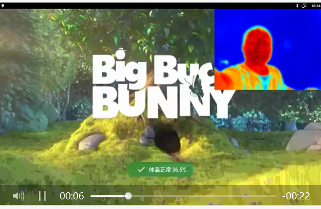 在大屏上安裝熱成像雙光測(cè)溫模塊,直接實(shí)現(xiàn)廣告播放及多人測(cè)溫。有人時(shí)測(cè)溫,無人時(shí)播放廣告。