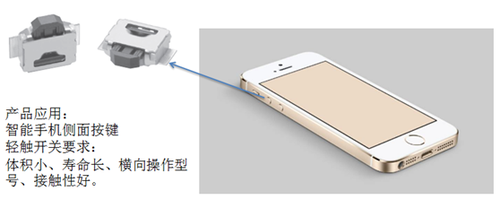 (一)智能手機:建議使用橫向操作型號開關B3U-3000P-B型號,用于智能手機側面按鍵,功能為控制開關電源、控制手機喇叭的音量。