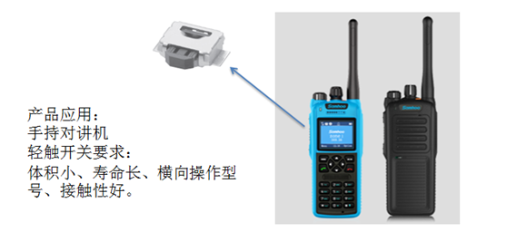 (三)手持對講機:建議使用橫向操作型B3U-3000P-B型號開關,用于控制手持對講機的音量。