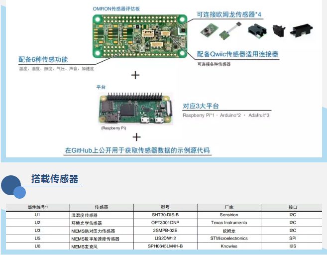 歐姆龍電子部件作為一家在傳感器領(lǐng)域有著先進(jìn)技術(shù)的高科技公司發(fā)布了傳感器評(píng)估板——2JCIE-EV,展示了歐姆龍領(lǐng)先于世界的高新技術(shù)在傳感器領(lǐng)域的應(yīng)用,幫助設(shè)計(jì)人員和工程師快速評(píng)估和開發(fā)測試。同時(shí)該評(píng)估板支持接入三大開放性平臺(tái)(Raspberry Pi*1、Arduino*2、Adafruit*3)并且適用于多種類型傳感器的評(píng)估。
