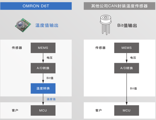 MEMS非接觸溫度傳感器采用歐姆龍自行設(shè)計(jì)的MEMS技術(shù),將熱電堆元件和ASIC封裝在一起,實(shí)現(xiàn)超小型化。