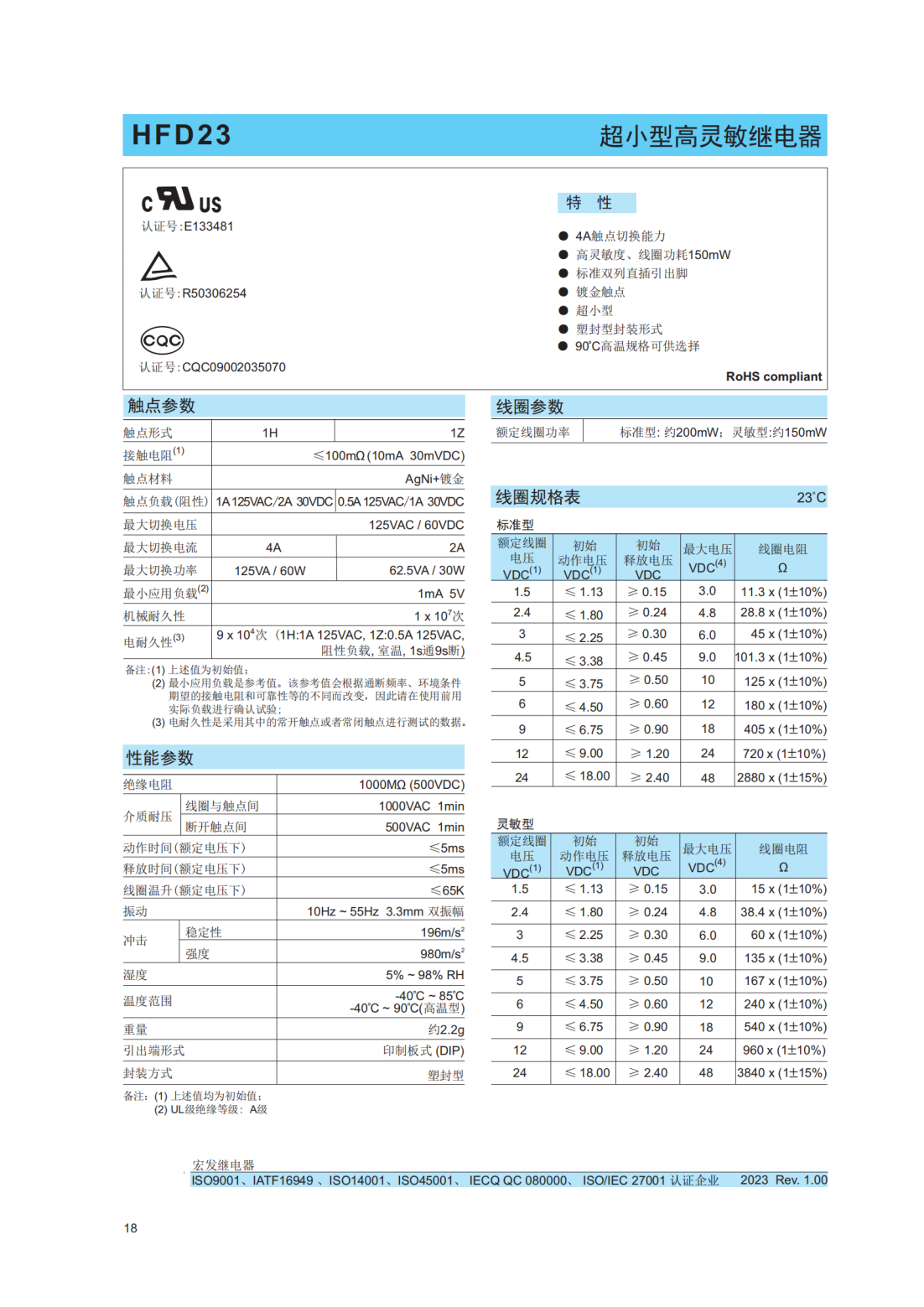 HFD23-012-1ZS4宏發(fā)繼電器