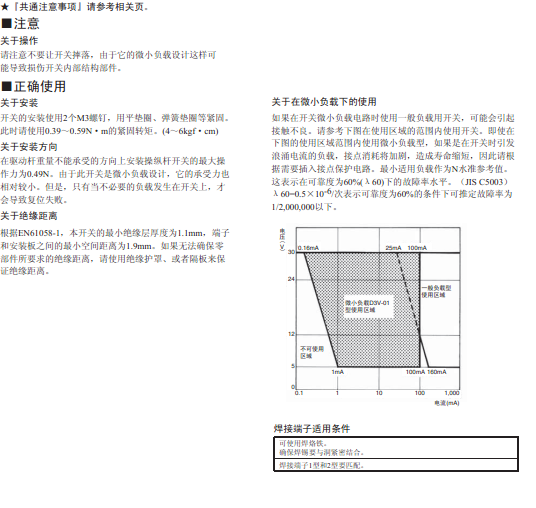 | 注:1.次數(shù)值為標(biāo)準(zhǔn)規(guī)格的節(jié)點(diǎn)間隔1mm(F ?Gap)的電流常熟,節(jié)點(diǎn)間隔為0.5mm(G Gap)的場合,定格多少有所不同,請充分注意。 |
