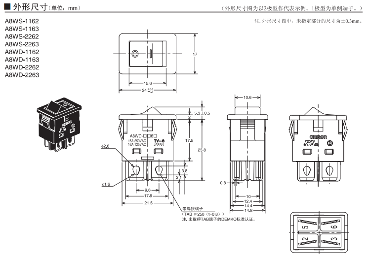 A8WD-1163船形歐姆龍開(kāi)關(guān)