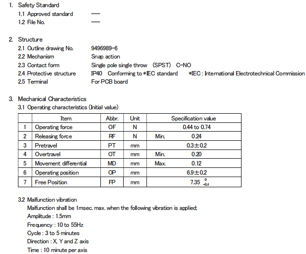 印刷基板用端子還備有獨(dú)立端子、直角端子。鼠標(biāo)開關(guān)的型號有: