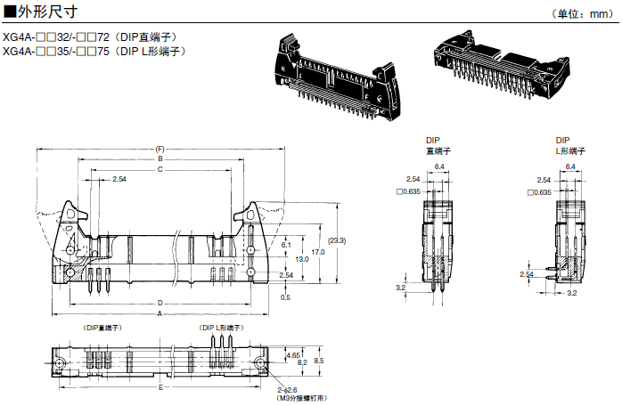 XG4A-□□32/-□□72 基板對電線連接