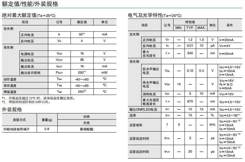 橫向安裝凹槽端子型(槽寬:2mm) 橫向孔徑 印刷線(xiàn)路板用端子 適用電源電壓為 DC4.5~16V 光電IC輸出(入光時(shí)ON) 可直接連接 C-MOS