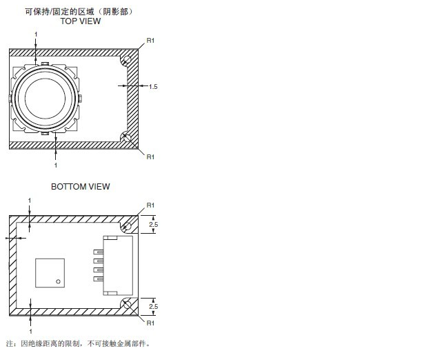 · 不可使用螺釘進(jìn)行安裝。否則會導(dǎo)致基板的保護(hù)層剝離。安裝時應(yīng)注意避免保護(hù)層剝離。