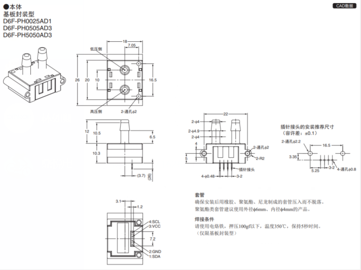 | D6F-PH0505AD3 | -50~+50Pa(±0.2in. H2O) | |