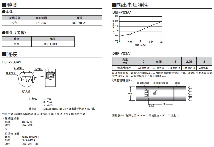 MEMS風(fēng)量流速傳感器D6F-V03A1